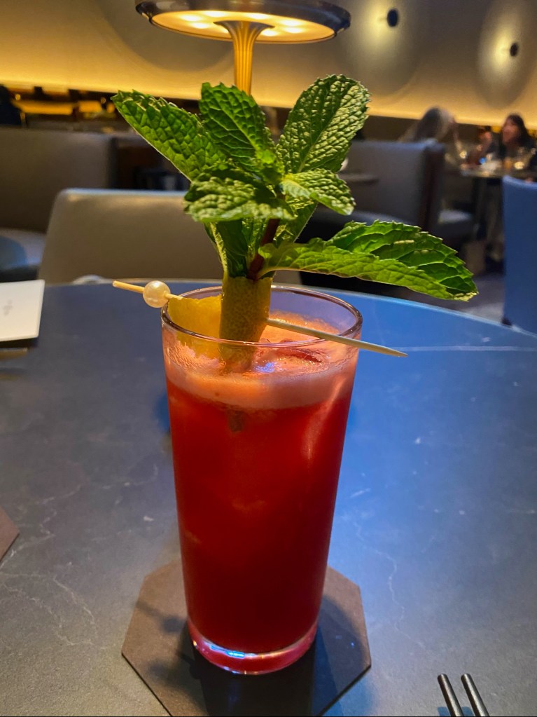 As for drinks, 53 has a vast menu for those both under and over legal drinking age. For obvious reasons, I can’t share any insight into the alcoholic drinks, but the mocktails, known as “Zero Proof Cocktails” on the menu, are creative and refreshing. By our server Joe’s recommendation, I got the Club Razz, a drink made with raspberry puree, mint tea, lemon juice, and sparkling water, and it did not disappoint. It was the perfect fresh and bright palate cleanser between dishes.