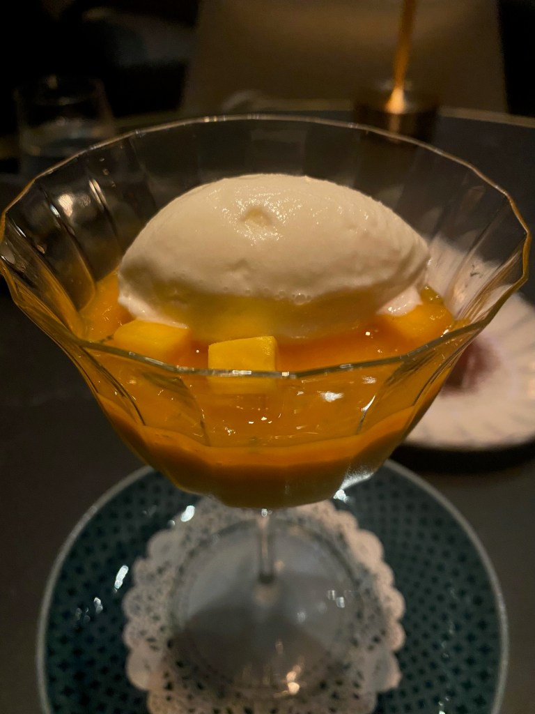 Before long, the nama chocolate and mango pudding were set on our table. I’m not a big chocolate fan, so I definitely prefer the mango pudding, but for you chocolate lovers out there, the mousse is incredibly rich, and paired with the vanilla ice cream, it’s a heck of a way to end your meal. For those who like ending on a lighter note, the mango pudding is superb. You can tell they use fresh mangoes, and the greek yogurt ice cream, something I hadn’t tried before, adds a nice, subtly tart note that I didn’t know I needed until I took a bite.