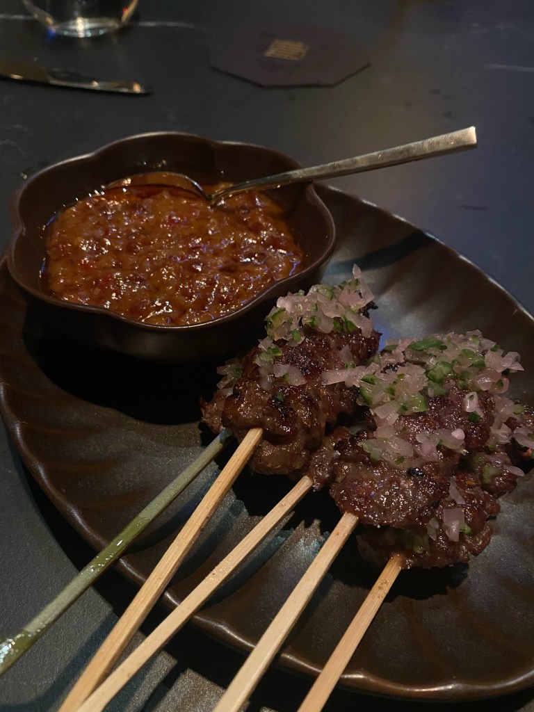 The last savory dish of the night was the wagyu beef sate. You know how the saying goes—“Save the best for last.” The tender beef, paired with the creamy but not overly sweet peanut sauce, was the perfect savory end to the dish. At that point, we thought we were done. That is, until Joe brought out the dessert.